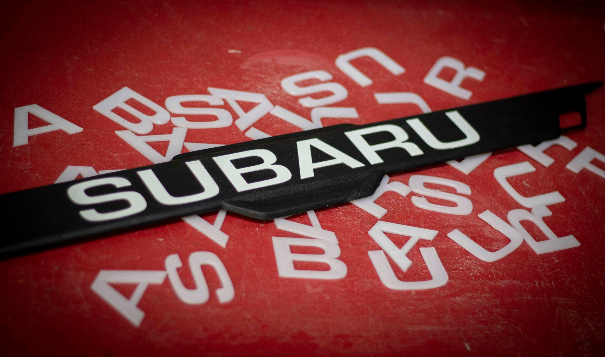Custom options available! The main color of the insert is textured black, and the default text is white SUBARU letters, but the text can vary in color and/or content (8 or fewer characters are recommended for best results) by selecting the Custom variant.